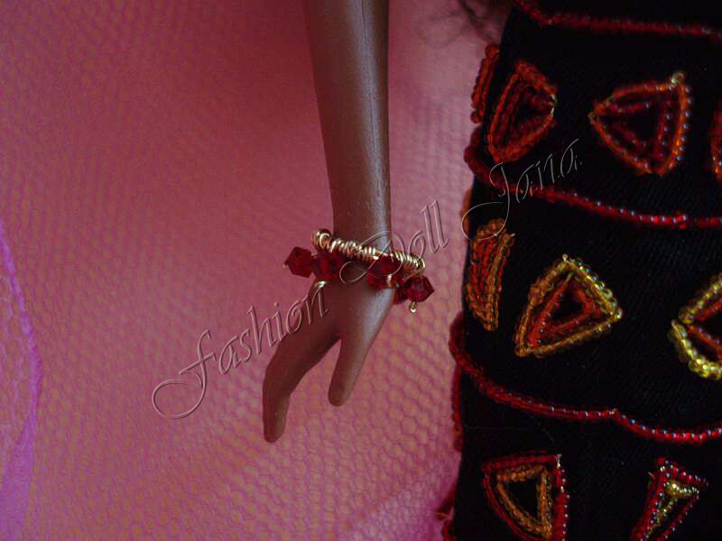 textile and ambroidered with red, yellow and orange beads. Black colour
